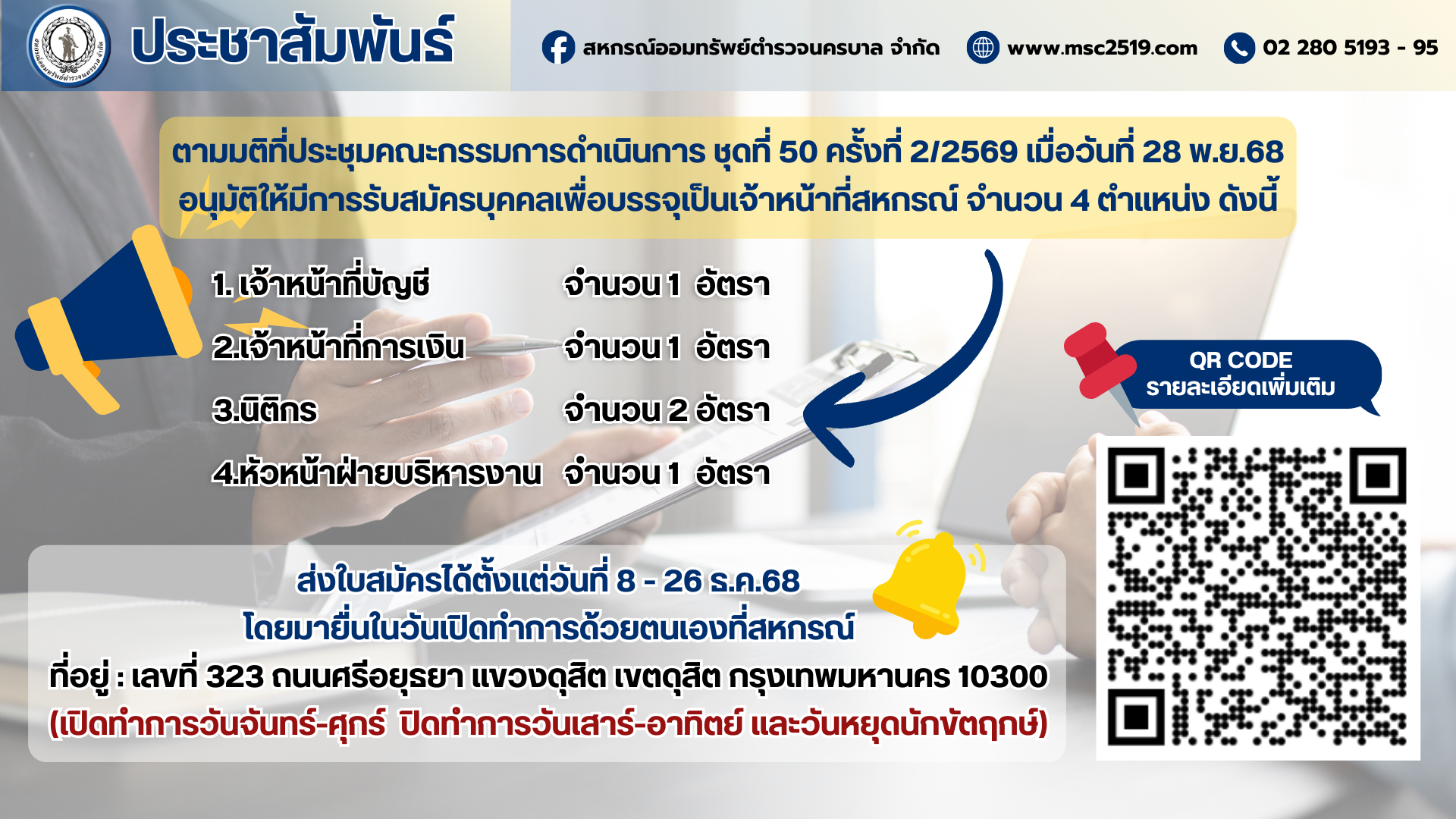 ขอความร่วมมือสมาชิกที่มีข้อมูลเครดิตบูโร สาถานะไม่ปกติ