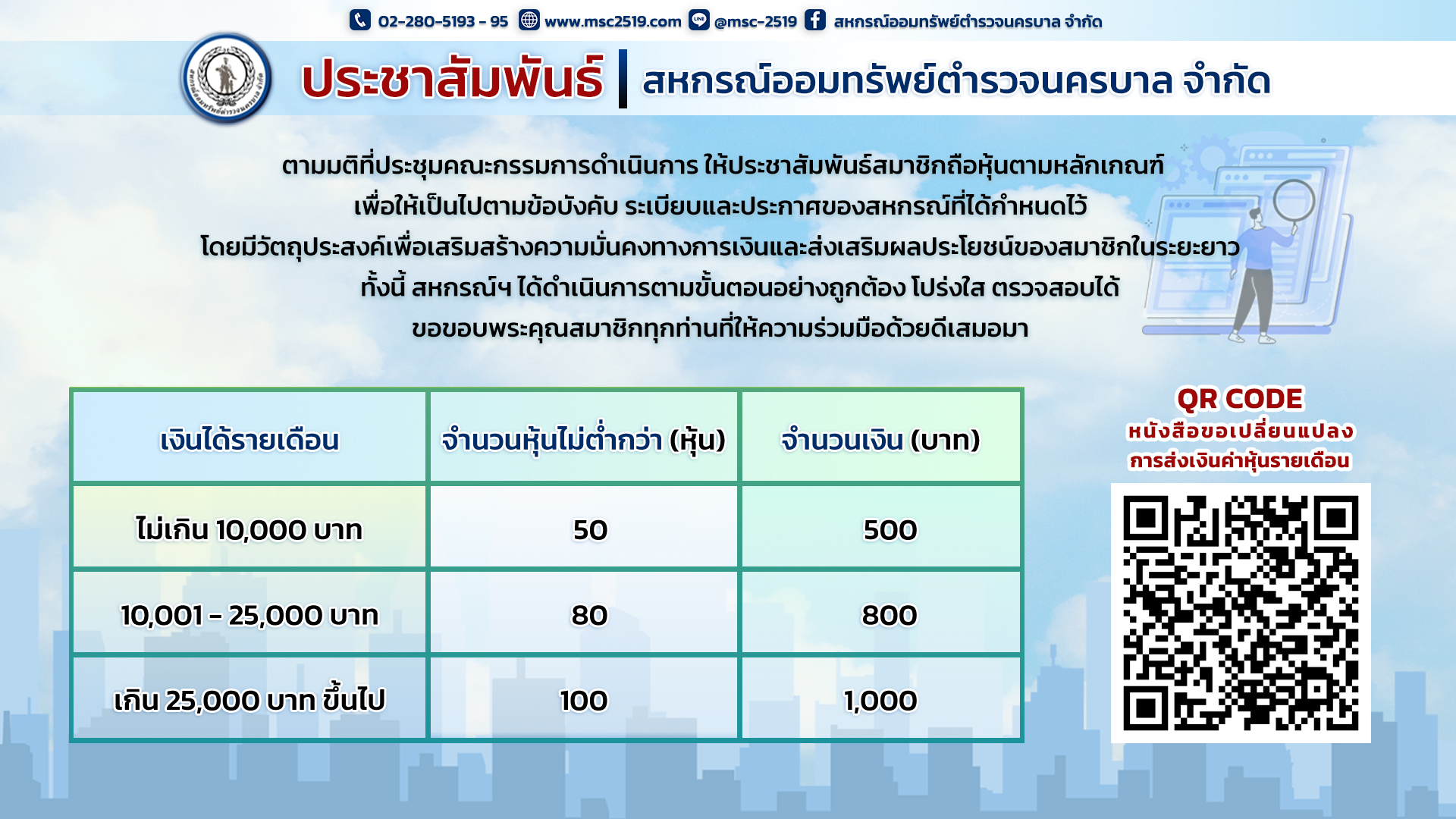 • ประชาสัมพันธ์การถือหุ้นของสมาชิกสามัญ