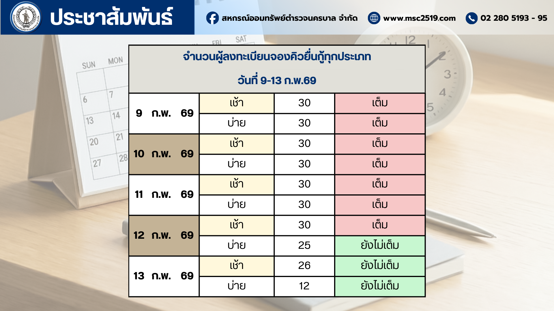 ขอความร่วมมือสมาชิกที่มีข้อมูลเครดิตบูโร สาถานะไม่ปกติ