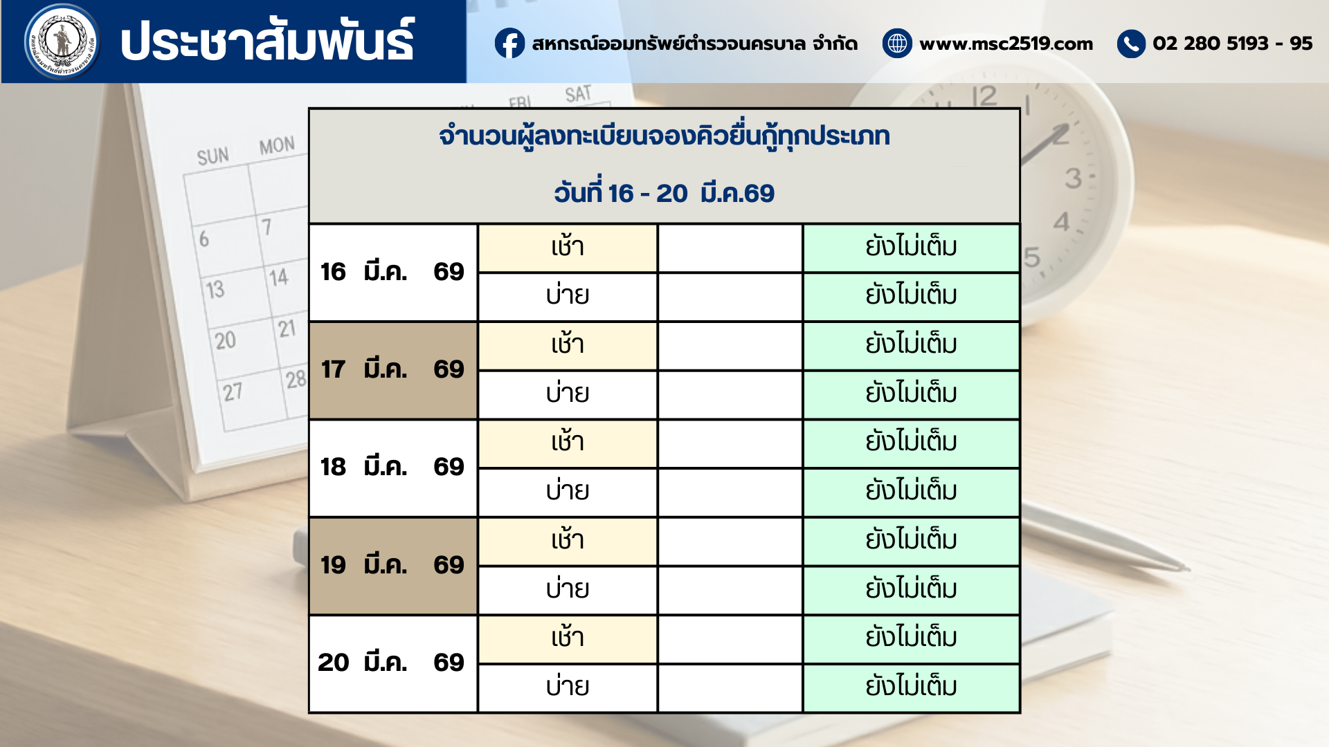 ขอความร่วมมือสมาชิกที่มีข้อมูลเครดิตบูโร สาถานะไม่ปกติ